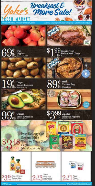 Want to plan your shopping early? Here's a quick look at Yoke's Weekly Ad for. Get a sneak peek at next week’s sales and featured items. Find deals on fresh produce, snacks, dairy, and more. It's the easiest way to know what's on sale before you visit the store. Check back often—this flyer is updated weekly!